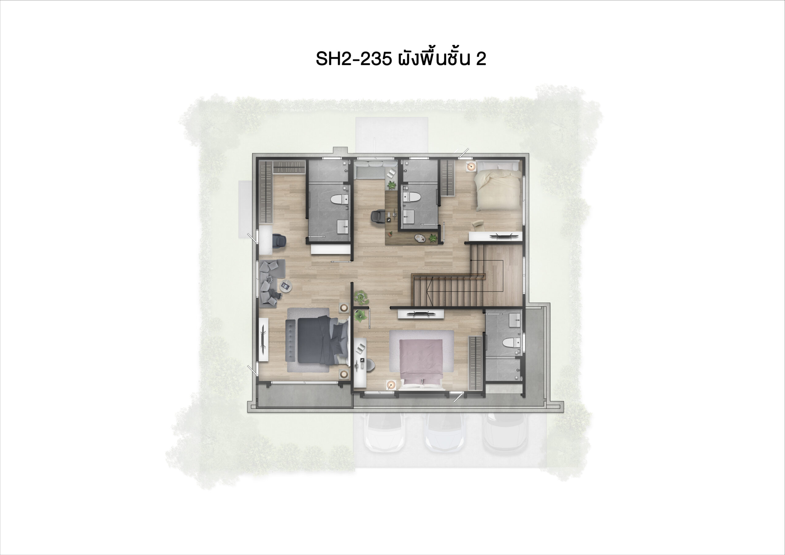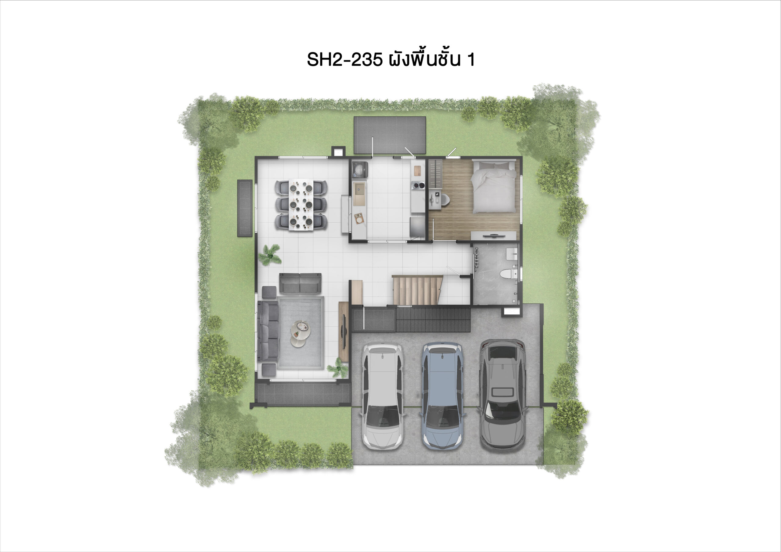 3 จอดในร่มทุกหลัง